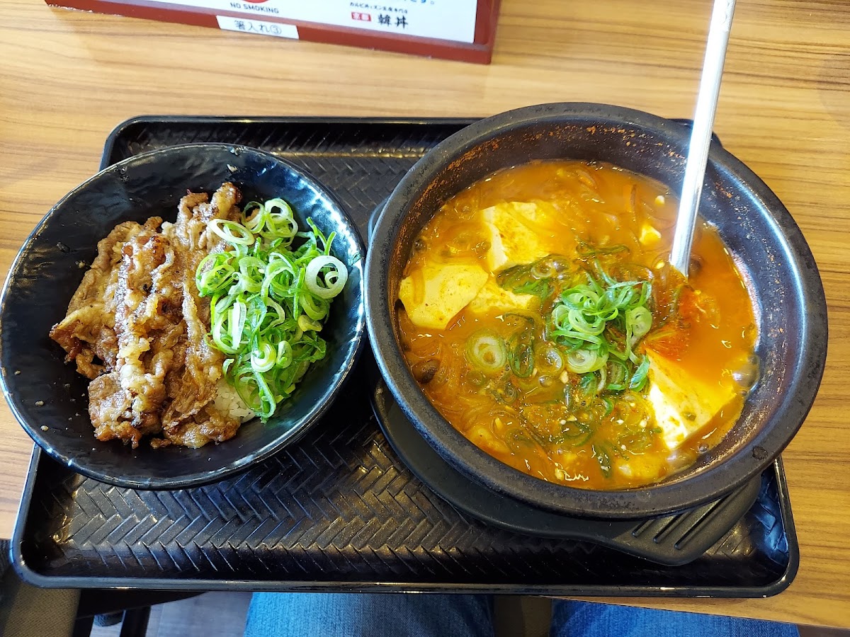 One of the highlights at Kandon Ritto is their 海鮮スンドゥブとミニカルビ丼セット (Seafood Sundubu and Mini Kalbi Don Set), a dish that perfectly balances the richness of seafood with the comforting warmth of spicy, silky tofu stew. If you're a fan of grilled meats, the カルビ焼肉定食 (Kalbi Yakiniku Set) is an absolute must-try, with tender, flavorful short ribs grilled to perfection. For a more unique twist, try the カルビ入り石焼ビビンバ 卵はトッピング (Stone-Baked Bibimbap with Kalbi and a Topping of Egg) for a delightful mix of sizzling rice, kalbi, and fresh vegetables, topped with a runny egg that adds an extra layer of richness. And for those who want a taste of something uniquely satisfying, the さっちゃんのカルビ丼 並 サラダセット (Sachan’s Kalbi Don with a Side Salad Set) is a fan favorite, offering a delicious combination of tender kalbi and a refreshing salad.